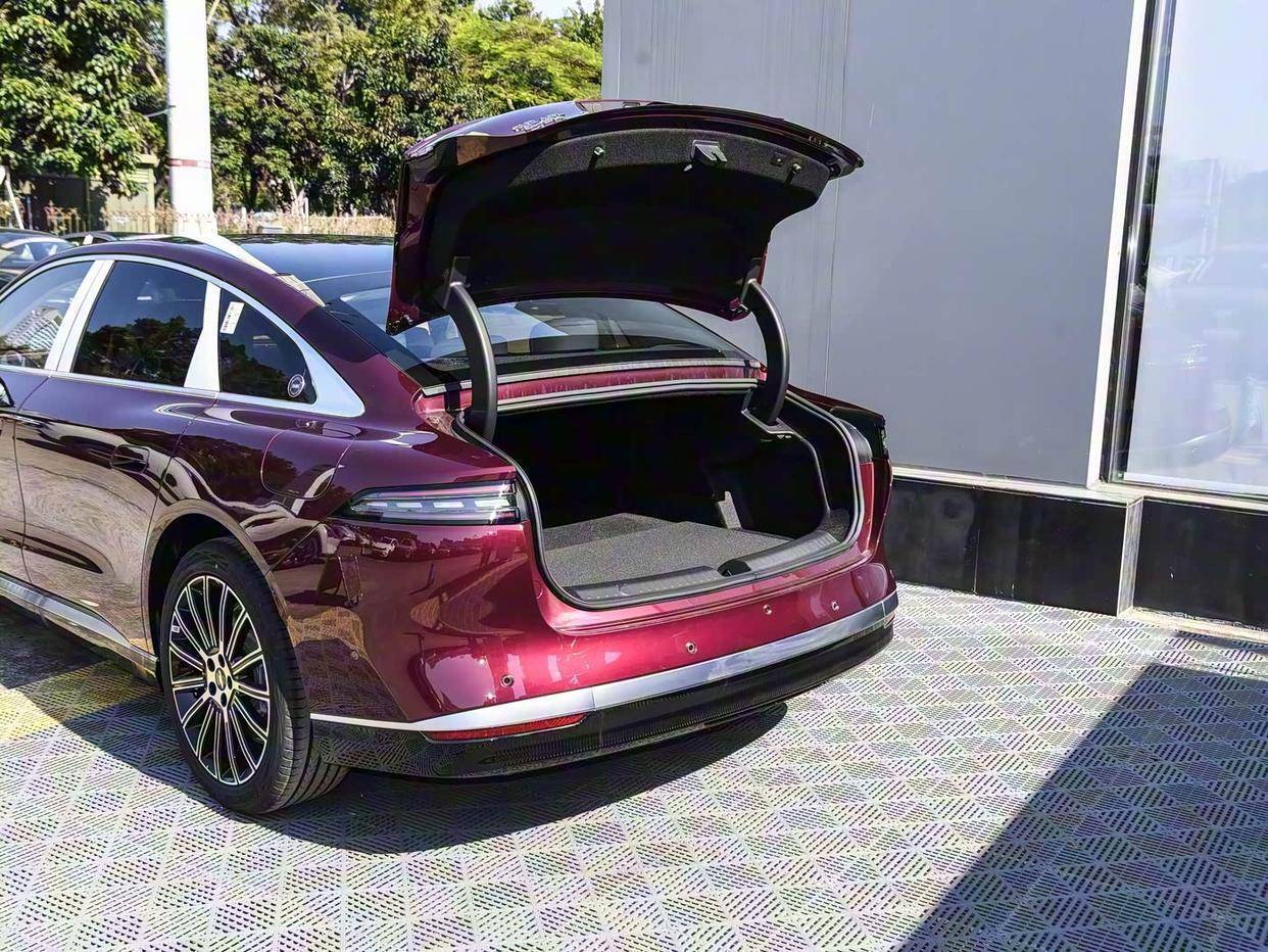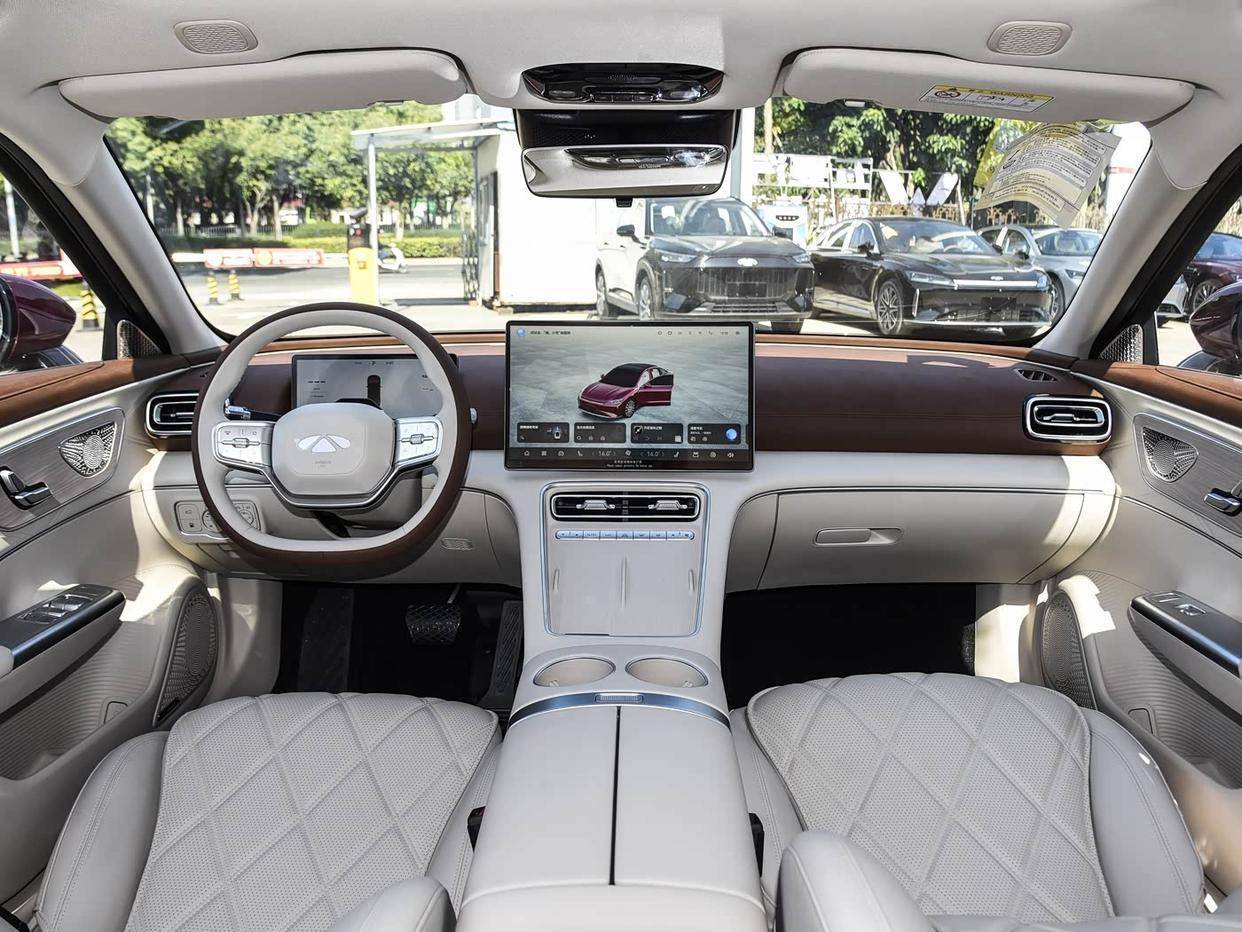 第五,该车的内饰设计十分简洁,中控台上没有多余的按键,配备了10.25英寸液晶仪表盘和15.6英寸中控屏幕。并搭载了骁龙8255车机芯片,保证了系统运行的流畅度。
