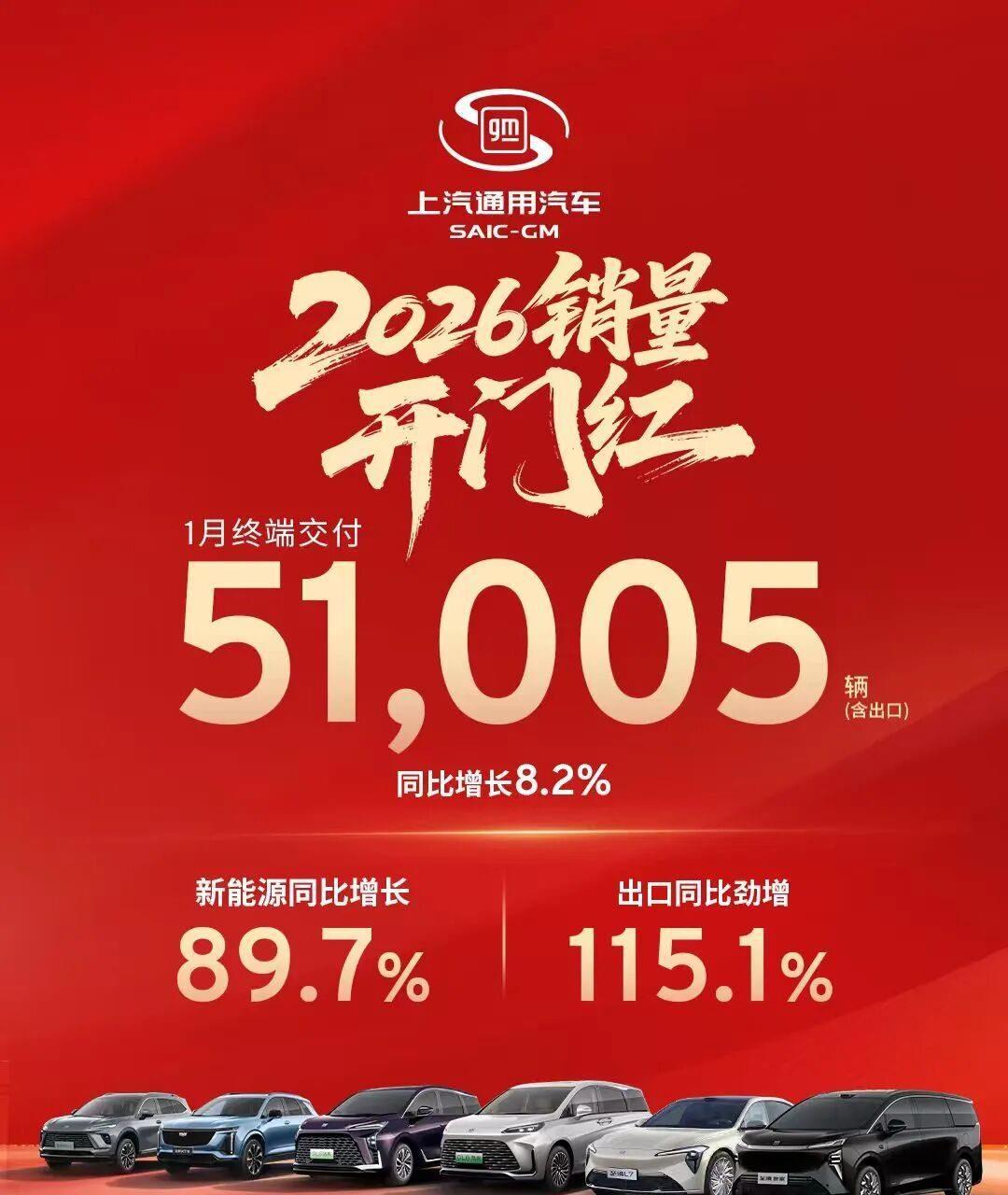 马年开年车市寒意未消,上汽通用却以一记漂亮的“开门红”策马提速,1月终端交付51005辆、同比增长8.2%,在行业整体下滑的背景下逆势上扬,更凭借新能源与出口的双轮暴增,彰显合资巨头的转型底气与硬核实力。这份成绩单的含金量,远超数字本身,更是其精准布局、技术攻坚的必然结果。